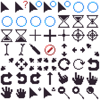 Some of these cursors were created originally for the Jam-Game Tiny Globes.
